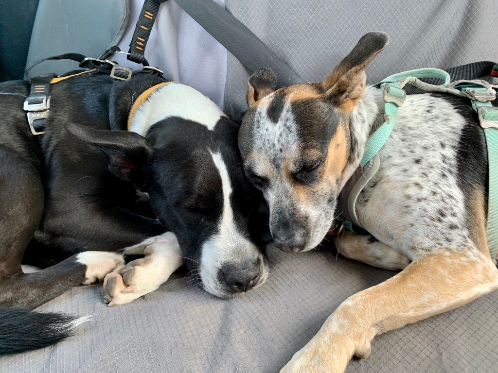 My two pups, Kal and Ender being proximate in a car ride today.